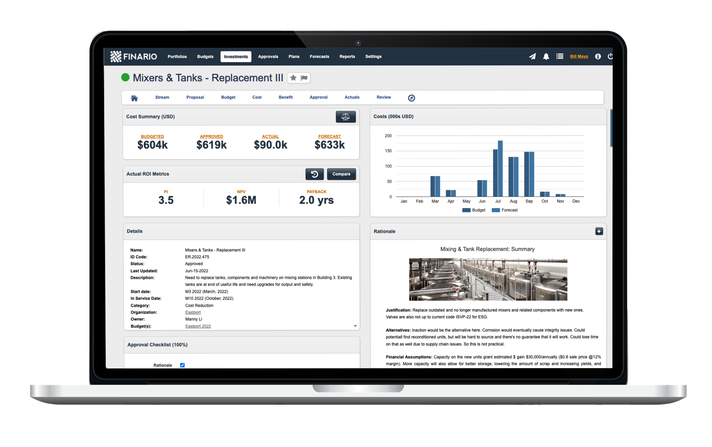 Finario is a purpose-built capex software that provides a unified view of your project data from investment inception through completion.